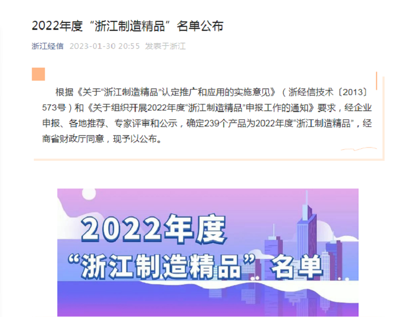 科潤智控產品入選2022年度“浙江制造精品”名單