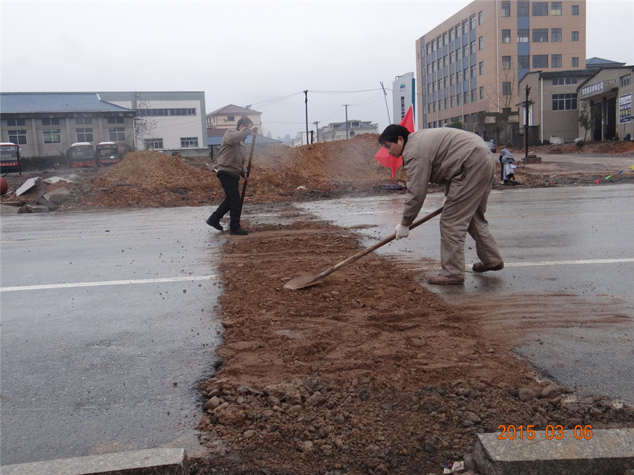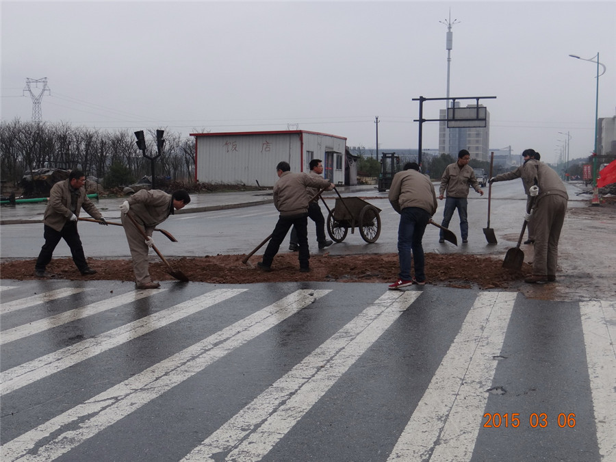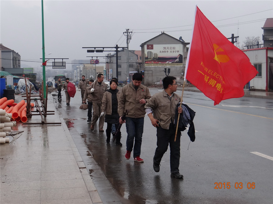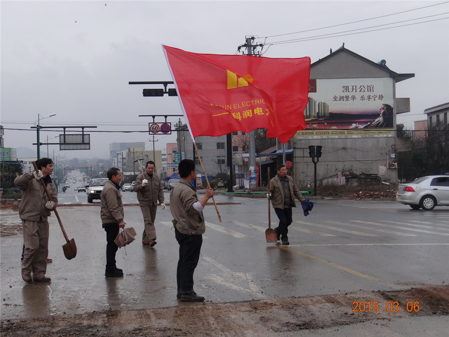 2015年3月6日上午,科潤電力科技股份有限公司黨支部、工會、婦聯、共青團組織相關人員,舉行迎三八節學雷鋒義務修路活動,對江山經濟開發區山海協作園區的創業路、協作路交叉路口的部分坑洼路面進行修填。