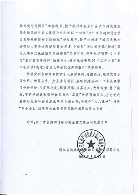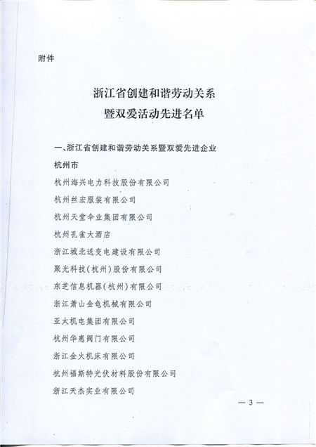 喜訊:科潤公司被評為浙江省創建和諧勞動關系暨雙愛先進企業