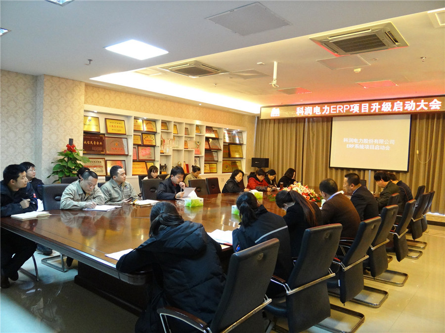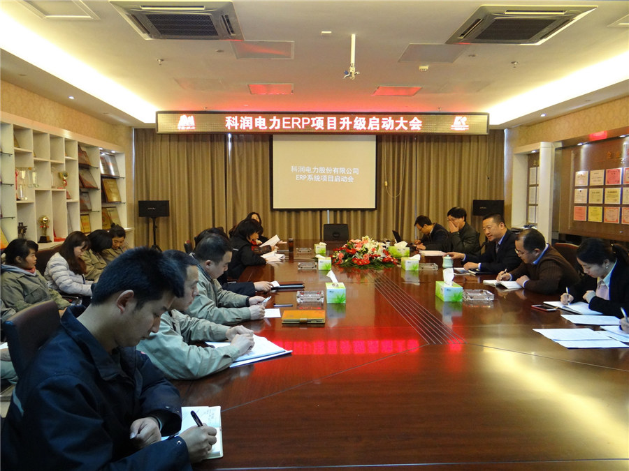 根據董事長的指示精神,為貫徹落實公司信息化戰略全新部署,進一步快速提升企業的現代化管理水平,適應新時期企業管理方式的變革,順應資本市場運作的發展趨勢,3月16日下午,我公司與西安啟源軟件技術有限責任公司項目負責人田如意在209會議室共同召開了“科潤電力ERP系統升級啟動大會”。總經理章群峰、公司項目領導小組成員近30人參加了會議。