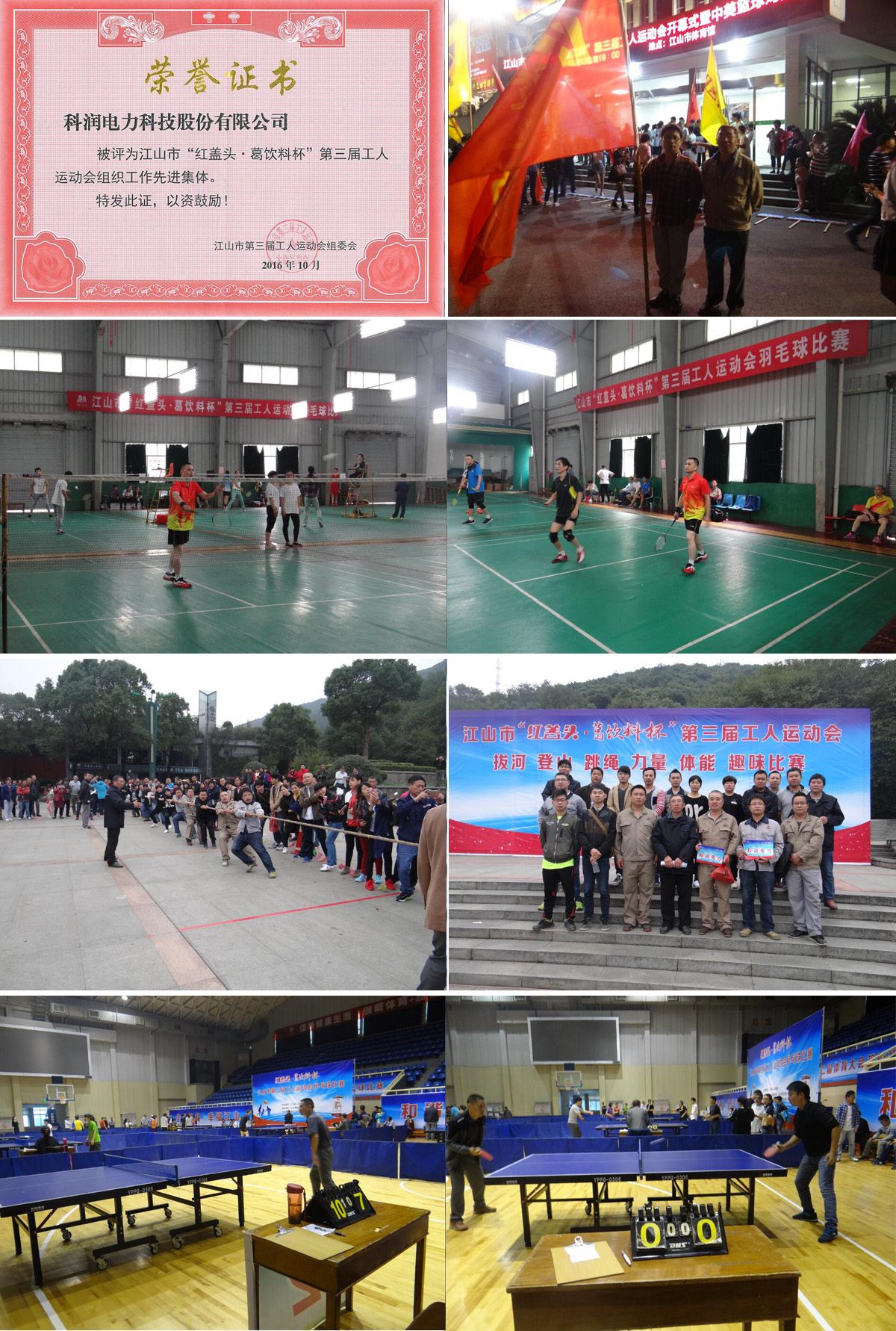 本屆運動會由江山市人民政府主辦,江山市體育局、總工會承辦,浙江紅蓋頭農業科技有限公司協辦。運動會根據工人運動的特點,主要體現力量和團隊,設置了拔河、氣排球、體能、力量等12個大項,吸引了來自全市各地的40支企業職工代表隊1739名運動員參賽,共產生60個小項的金牌。 我司代表隊共有36名運動員分別參加了羽毛球、乒乓球、拔河、登山、圍棋、跳繩比賽,獲得了羽毛球老總組男子單打金牌,羽毛球男子雙打第四名,拔河比賽第七名,登山比賽第八名。并獲得江山市“紅蓋頭·葛飲料杯”第三屆工人運動會組織工作先進集體。