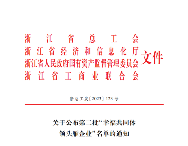 近日,省總工會、省經信廳、省國資委、省工商聯聯合印發《關于公布第二批“幸福共同體領頭雁企業”名單的通知》浙總工發〔2023〕123號文件,科潤智控光榮登榜。