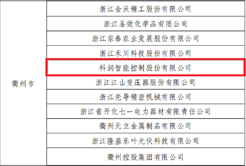 科潤智控上榜浙江省“幸福共同體領頭雁”名單