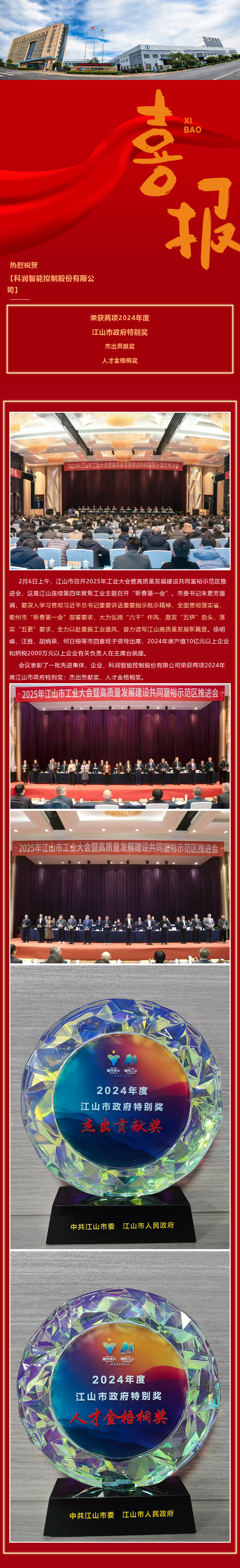 喜報(bào)|科潤(rùn)智控榮獲兩項(xiàng)江山市政府特別獎(jiǎng)